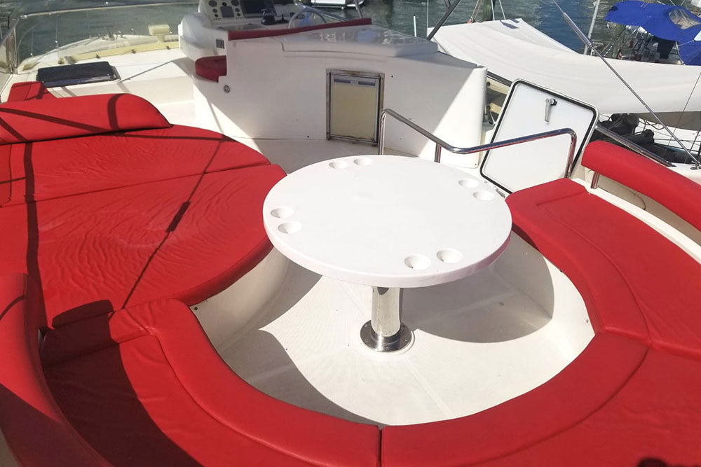 Experience luxury and freedom with the Miami 60' Ferretti. With 3 staterooms and 2 bathrooms, this 60 ft flybridge boat provides comfort and convenience. Take in the stunning views while enjoying music from the Bluetooth stereo sound system. Plus, with the included Lily Pad, you can relax and soak up the sun. Book now for an unforgettable 4-hour experience!