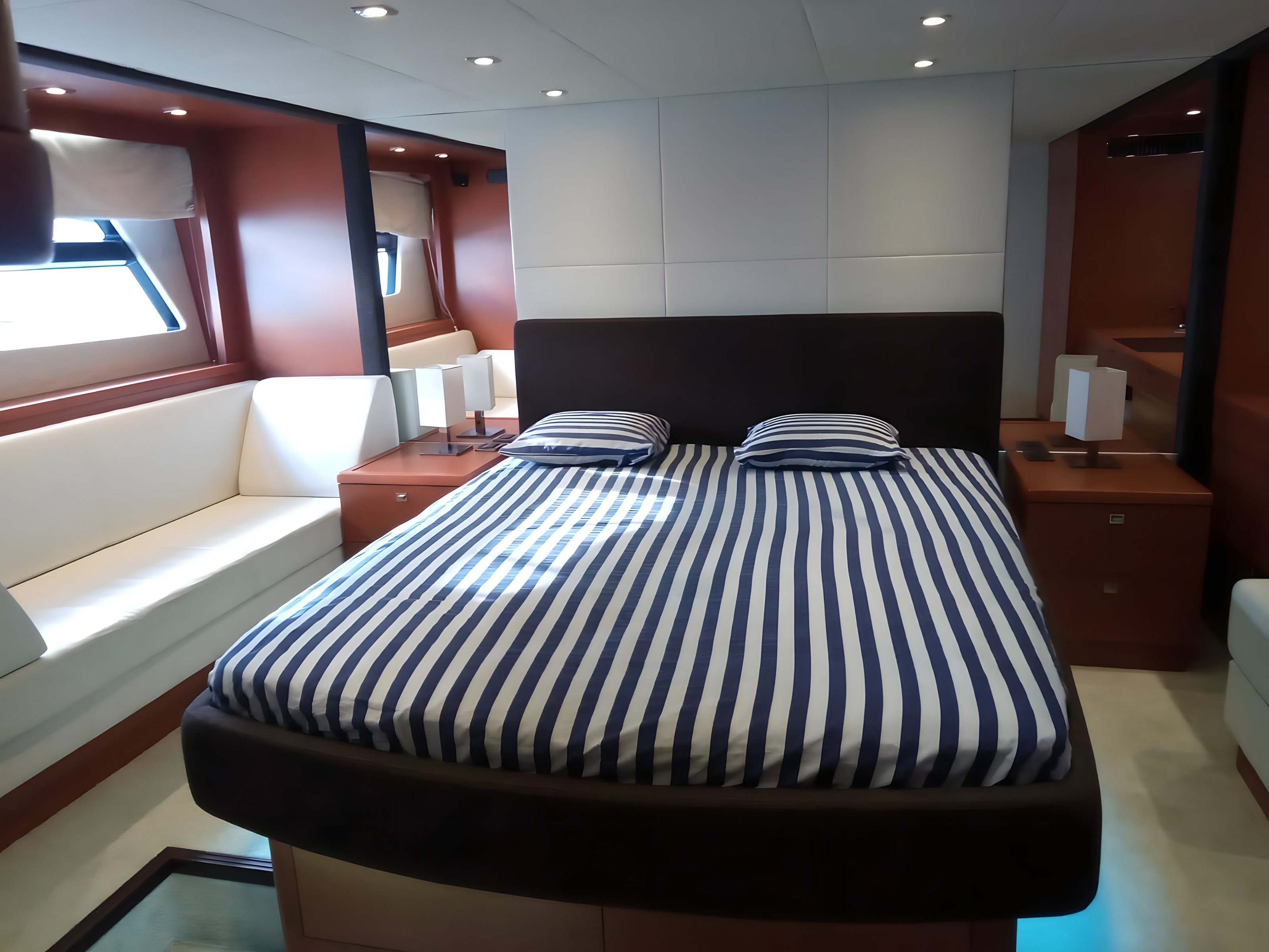This 19 meter flybridge yacht and its hardtop and flybridge modification (Prestige 620 S), are the two that now represent the Yacht Division segment in the Prestige range. Which makes it clear that the Prestige 620 is a serious boat for long trips. In addition to the three Guest Cabins, there is a double Crew Cabin.
