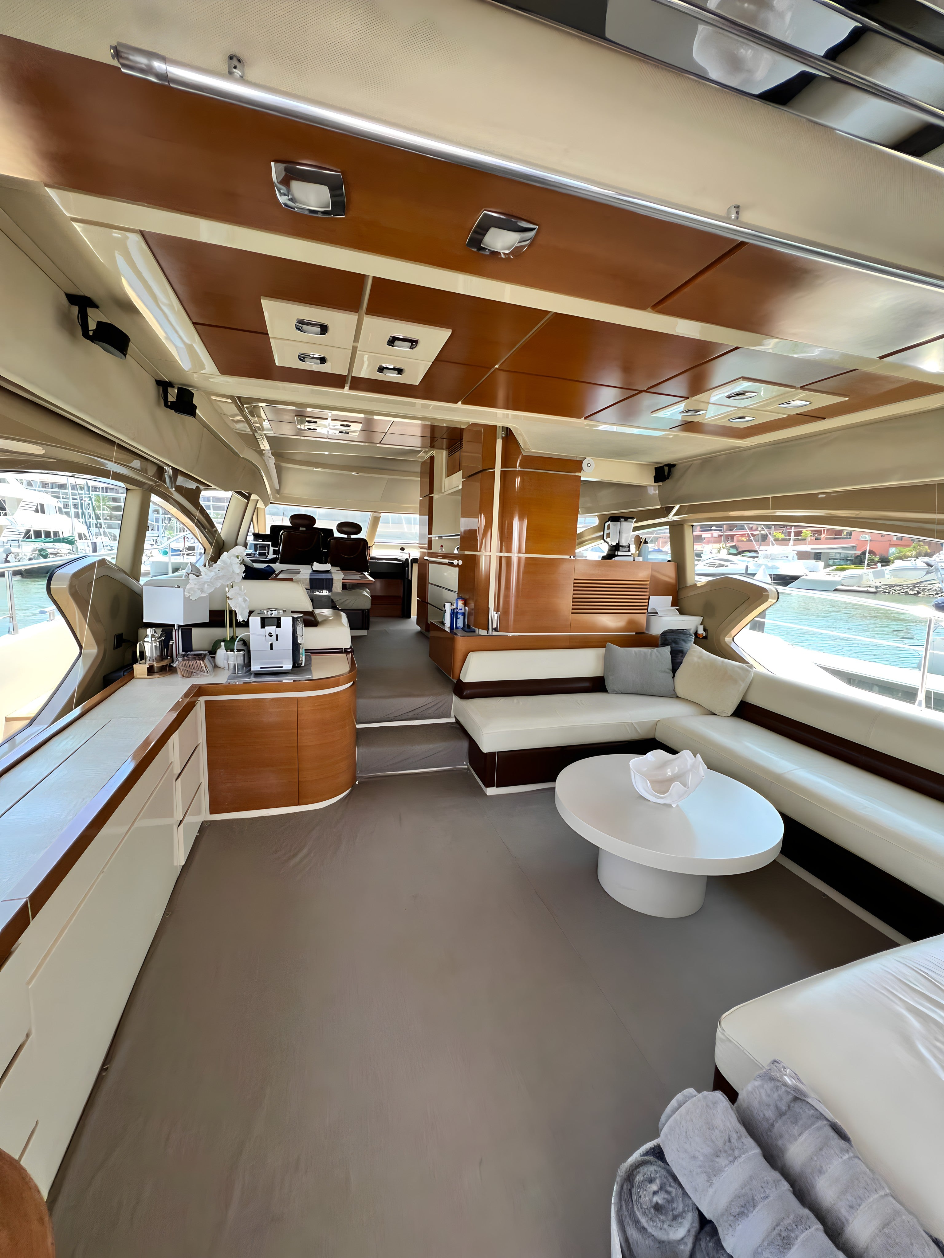 From the outside, the 70 yacht presents itself with studied and unusual curved lines, characterized by the presence of large glass surfaces, both along the sides of the hull and on the deck superstructure: a design that can be appreciated both from from the outside and from the inside, offering a 360° outlook. Prices are approximate since they are based off the dollar to peso exchange rate. 55% deposit required to reserve.