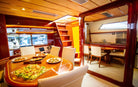 It is one of the largest boats in the bay, its wide spaces make this yacht a very comfortable place to navigate. Its cabins, deck lounge, kitchen, bow and bathrooms are perfect for exploring the ocean in a safe space of luxury and comfort.